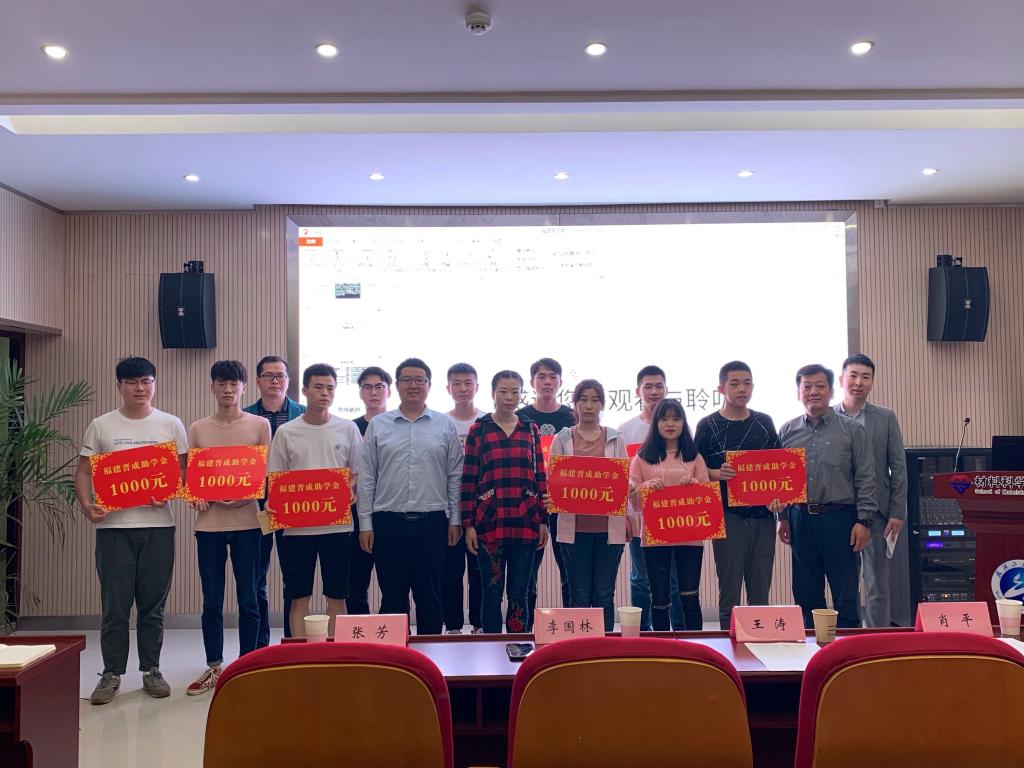 (通讯员 王博)4月19日上午,“福建晋成助学金”颁发仪式在报告厅举行。学校学工部部长王涛、公司党委常务副书记李国林、公司党委副书记肖平、无机非金属教研室主任张芳出席了本次颁奖仪式。仪式由学院学工办主任王博主持。