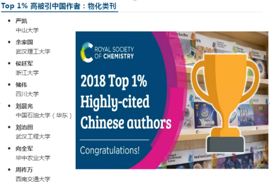 (2018英国皇家化学会“Top1%高被引中国作者”榜单详见链接https://mp.weixin.qq.com/s/mJ3fE4JjUdMDHlfW-AyyPA)