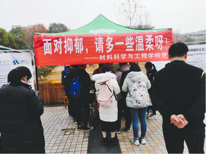 12月16-17日,于中快餐厅门口开展抑郁宣传活动,宣传心理健康和抑郁症的知识,帮助更多的人懂得自助和善于助他。本次宣传为线上线下同时进行,线下采用海报展览形式,线上用H5的形式在官Q进行宣传。宣传主要包括两大部分“认识抑郁的症状、了解治疗方法”和“如何对待抑郁的亲友”,另外,设置留言板,用于写下有关抑郁的分享。六百余人参与了此次展览,二百余人参与了线上转发,有些员工和老师在现场进行了咨询和了解。