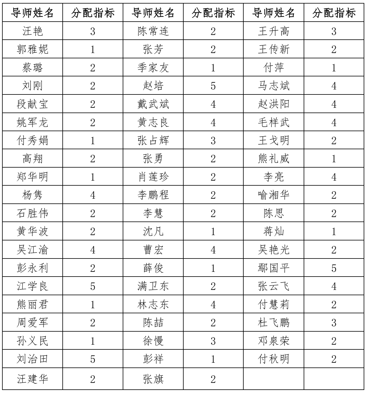 2019年每位老师招收硕士研究生人数≤下表中的分配指标,且2017—2019年三年所招收硕士研究生总数≤12