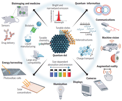2)量子点太阳能电池和光电成像器件。量子点被广泛应用于各种光电领域的研究中。在这些应用中,围绕国家科技发展战略,瞄准光能-电能转化中的关键难题,以太阳能电池和光电成像器件为研究对象,致力于光伏材料及器件结构的研究尤其是量子点材料的设计、表面调控、薄膜制备及器件界面修饰等方面的探究,注重交叉前沿研究和前瞻性,发展高性能的太阳能电池和光电成像仪。