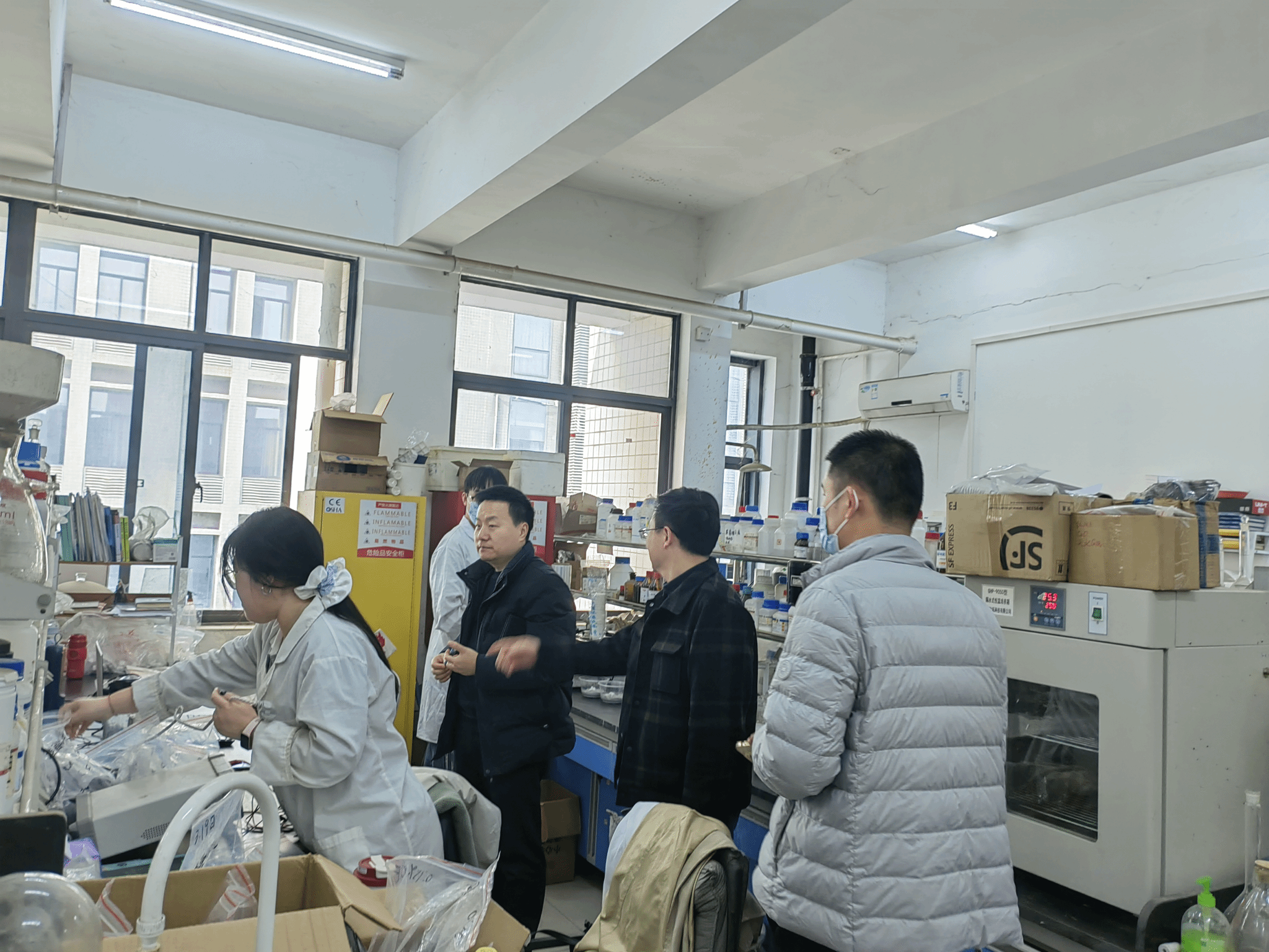 对照学校及学院相关安全管理规定,检查组对实验室的危险化学品管理、卫生状况、实验室安全日志填报等情况进行了检查和反馈。