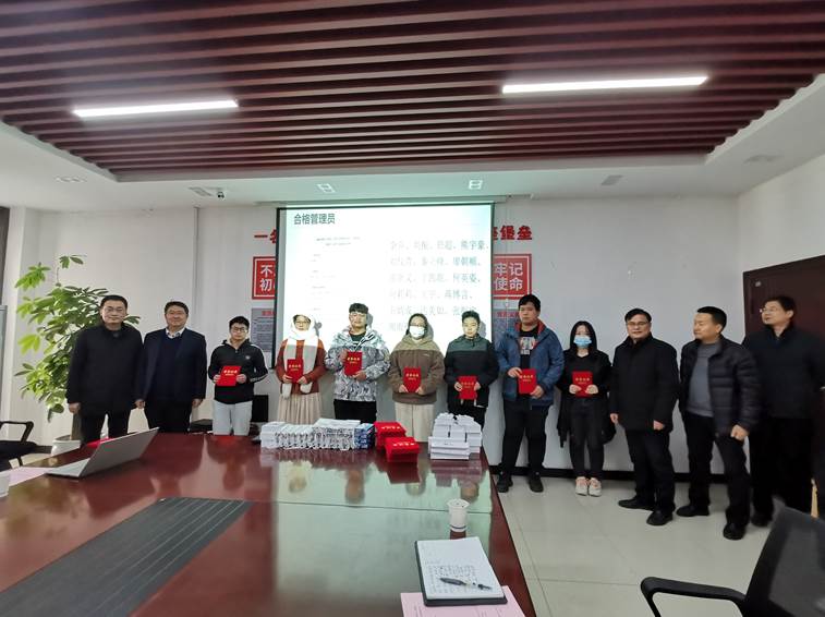 随后经理江学良宣读了获奖名单,并举行了简短隆重的颁奖仪式,到场嘉宾依次给员工经理及各委员、优秀管理员、合格管理员颁发了证书,并与他们亲切合影留念。
