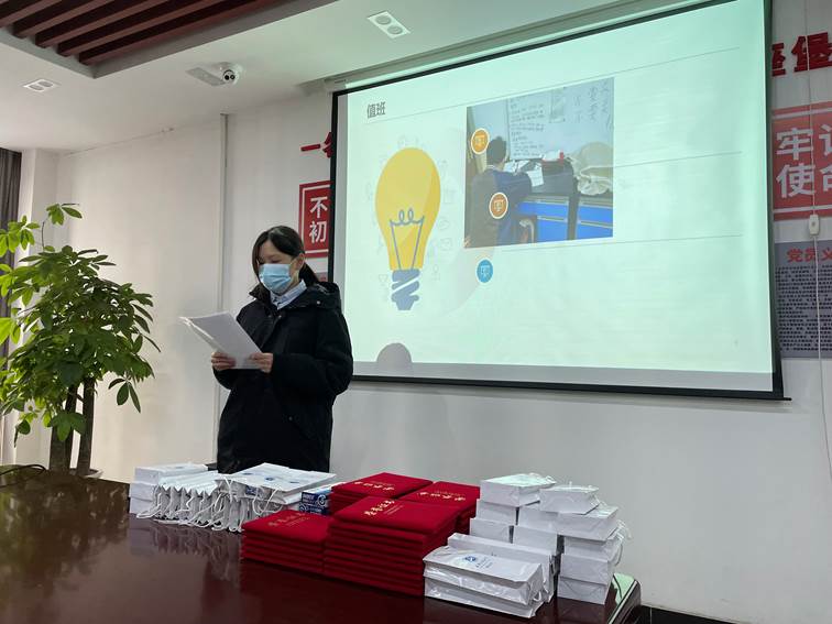 2020级房幸沅同学代表优秀员工管理员分享心得体会,她认真总结了本届员工管理员的主要工作以及取得的成绩和不足,她说员工管理员的工作很轻,轻到只需要按时值班、巡查,有充足的时间学习,员工管理员的工作又很重,重到一个小小举动可以关系到学院师生的人身安全。
