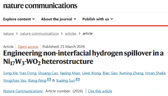 近日,MK SPORTS熊礼威与彭祥教授团队在氢能催化研究领域取得重要进展,相关成果以“Engineering non-interfacial hydrogen spillover in a Ni17W3-WO2 heterostructure”为题发表在国际著名期刊《自然·通讯》(Nature Communications, IF: 15.7)上。研究提出了应变梯度工程这一通用设计策略,成功在非贵金属异质结催化剂中实现了高效的“非界面氢溢流”,为低成本、高性能电催化剂的理性设计开辟了新路径。